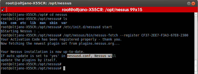 好了,现在你已经安装了Nessus,下面是运行它。打开一个新的终端,你可以通过键入“/etc/init.d/nessusd start”运行Nessus 。由于我用的家庭版,我需要一个它的有效许可证。