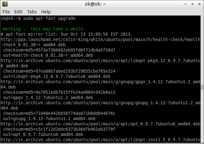 我发现 aria2 下载管理器已经随着apt-fast的安装而自动安装。所以,你不必单独安装aria2。
