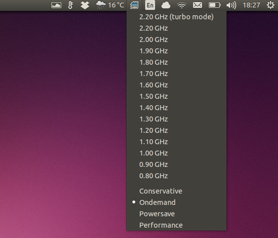 CPU频率是一款等效于“GNOME-CPU调频”的应用。你可以实时的调整CPU的频率。点击下面的按钮从Ubuntu软件中心安装。