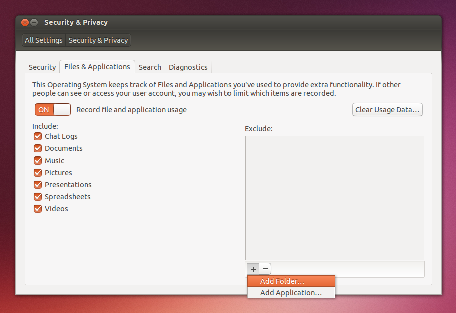 你应该知道可以通过默认的Dash来查看最近访问的文件和其他的一些文件。系统设置可以通过设置**“安全和隐私”**来选择显示的文件类型。这样就不用看到那些软件、文件夹之类的了。你也可以清除最近的记录。