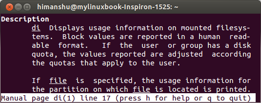 如果你正试图通过一个脚本(或程序)解析该命令的输出结果并希望 di 命令跳过显示的标题行,那么用 -n 选项是绝佳的方法。