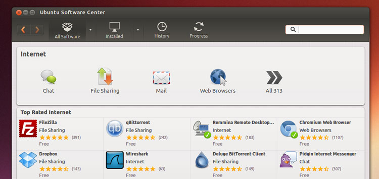 打开Ubuntu软件中心,可以看到成千上万的程序,包括下面这些很流行的选择: