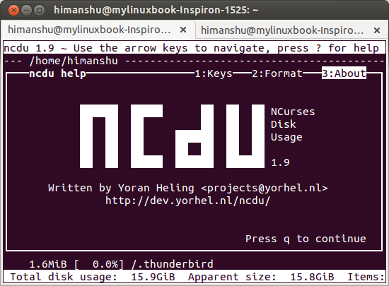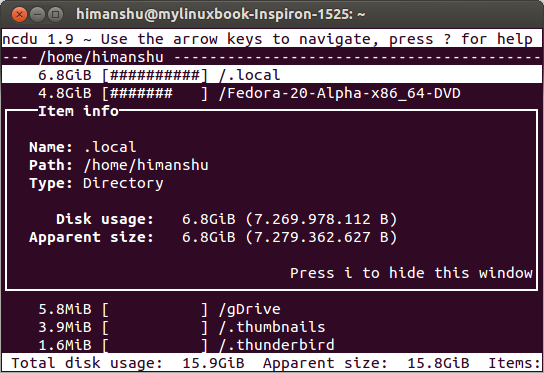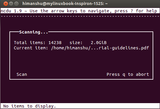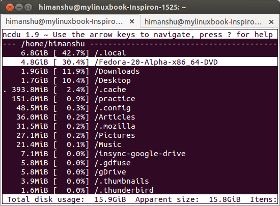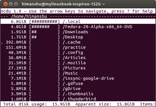 这个命令行工具只是一个基于curses版本的标准du命令。它可帮助你在没有安装图形环境的情况下快速查看系统的磁盘使用统计。