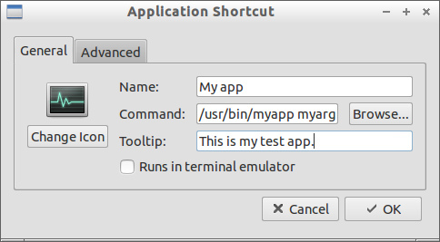 在这个例子中,gnome-desktop-item-edit会在目录~/.local/share/applications中自动创建一个桌面启动器文件。若是想自定义快捷方式图标或者其它信息,你可以手动编辑.desktop文件。