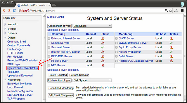 实时监控服务器状态和其他服务, 同时配置定时监控及邮件提醒。 你也可以监控一系列服务器守护进程如 NFS、MySQL、 BIND DNS、Squid proxy、Apache Web server等, 或者监控系统资源如磁盘存储情况、内存使用和网络占用等。