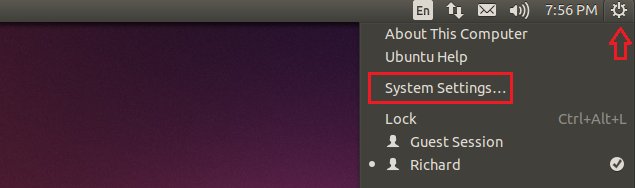 好了,现在咱们开始吧,点击顶部右端面板中的齿轮按钮选择System Settings(系统设置)…