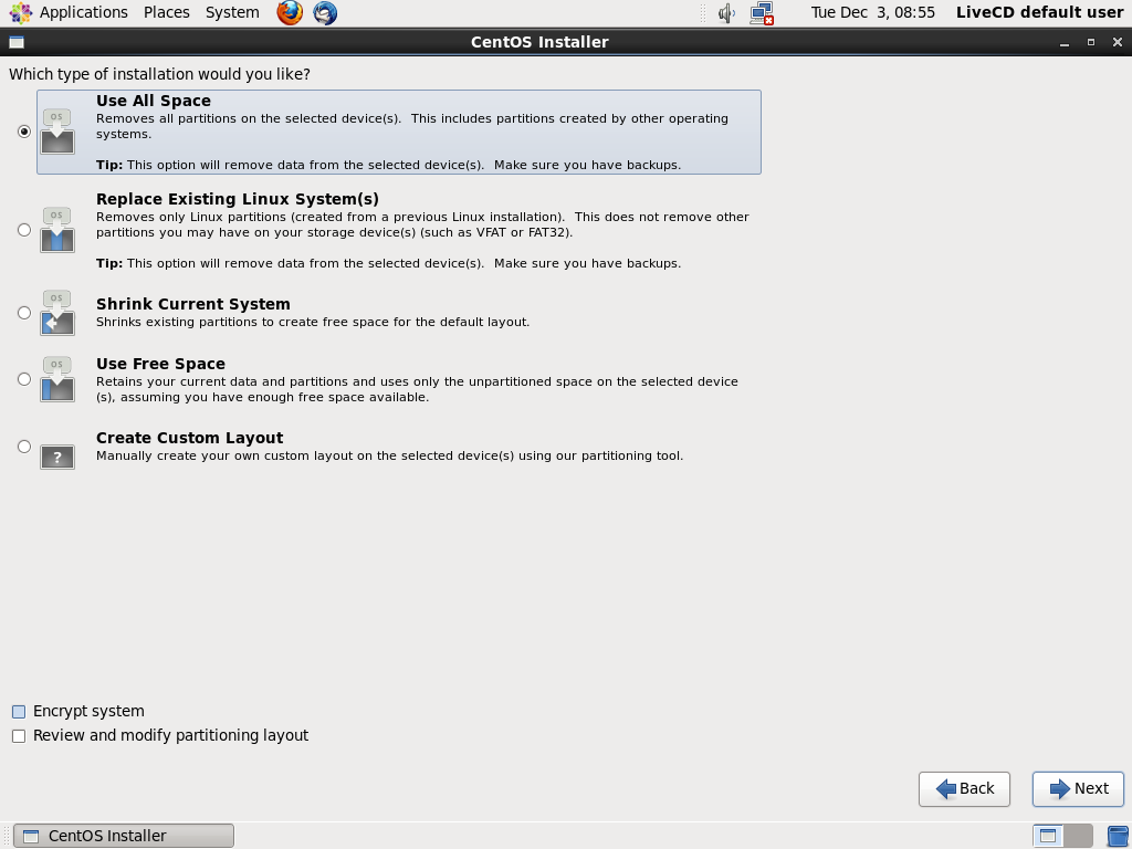 所以现在,该是时候在你的桌面系统安装CentOS了。快点使用LiveDVD或者是LiveCD去启动运行吧!