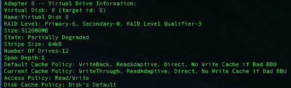 目前國內大家常用的DELL和HP服務器多數都已經集成了LSI公司的Raid控制器,以上的這些狀態和Policy的調整在Linux中都可以通過其MegaCLI工具包操作:
