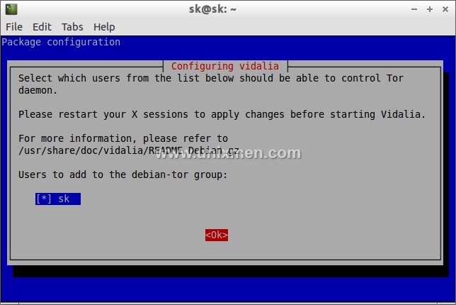 在安装期间,你会被问到要用哪一个用户来负责 Tor 服务,选择一个用户然后点击 OK。