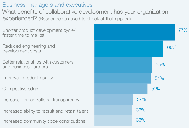 但协同软件开发背后的目的可不是围着营火手牵着手唱“kumbaya”。各种组织对协同软件开发的期待都是出于驱动有形商业利益的目的。