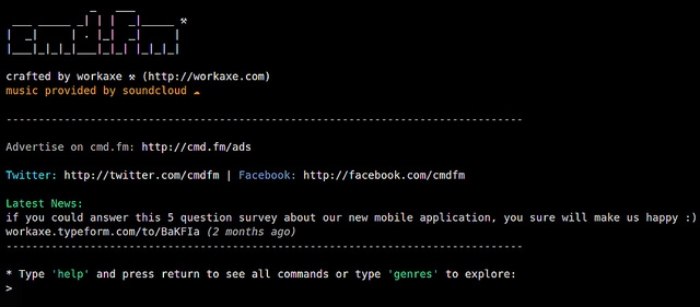 另外一个额外的奖励:如果你喜欢在终端上使用SoundCloud的想法,但不想安装任何额外的软件(也许你不能),我劝你去cmd.fm。该网站是一个伪装的SoundCloud,它隐藏在一个shell界面后。