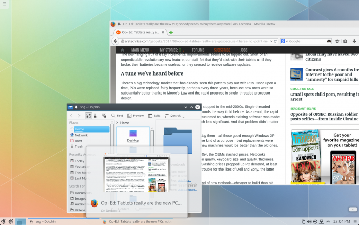 KDE 正在尝试做其他 Linux 桌面都没有做过的事 ———— 向平板电脑及移动设备桌面前进的同时,继续向用户提供传统的、多功能的、高度定制化的桌面体验。