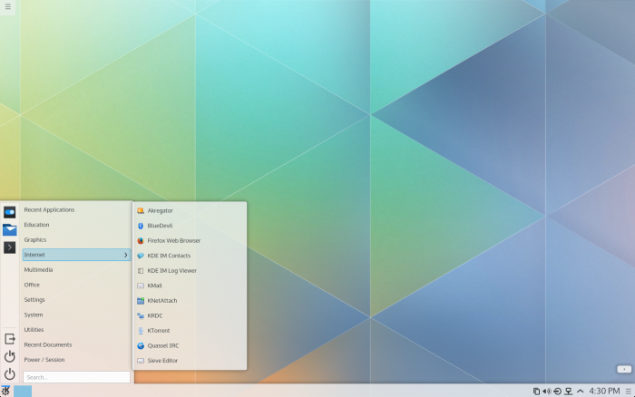 如果这样对你的需求来说还是有点多,Plasma 5 提供了一个全新的、更加传统的菜单 ———— 称为 Kicker,基于原启动器。Kicker 所需完成的任务更少 ———— 它更接近于 XP 中的开始菜单,在需要提供扩展菜单的地方提供一种单一的、狭窄的面板 ———— 并且在你如果只是想启动应用或打开文件时,提供一种更加轻量级的选择。它也有一个非常显眼的搜索框。