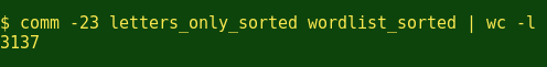我现在可以用comm命令及’-23’的参数来比较两个列表,并报告纯字母文件中而没有出现在字典中的单词: