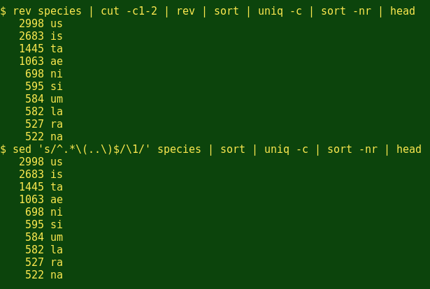 大多数人讲科学名称带玩笑式地用’-us’结局,如’Biggus buggus’。那么昆虫学家呢?有几个不错的,用命令行的方式获取字符串的最后2个字母,在这里我都会用到这2个: