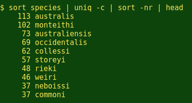 从多列的表中做’top 10’等排名,需要更多些的命令行工具。我将会在未来的文章中证明他们的用处。