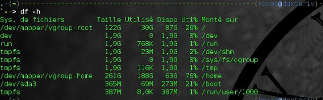 作为一个 LVM 使用者, 我非常喜欢随时查看我的硬盘存储器的使用情况. 我也从来没法真正理解为什么在 Windows 上我们非得打开资源管理器来查看电脑的基本信息。在 Linux 上, 我们可以使用如下命令: