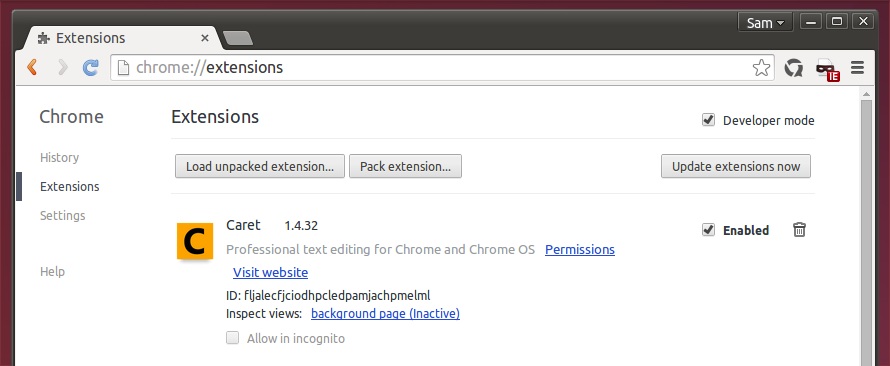 要安装它,打开Google Chrome,点击汉堡式菜单按钮,然后导航到扩展页。检查‘启用开发者模式’并点击‘加载解包的扩展’按钮。