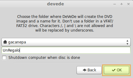 在DeVeDe创建完视频DVD后,下面这个对话框将呈现在我们眼前: