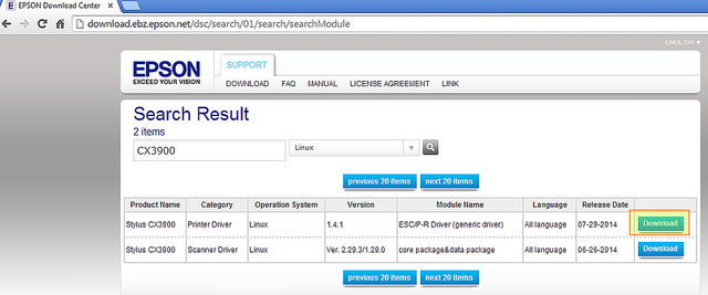 6、 如果打印机如果不被CUPS支持(没有在下一页中列出来),我们必须从生产厂家的网站上下载驱动(如http://download.ebz.epson.net/dsc/search/01/search/?OSC=LX),安装完后回到该页。