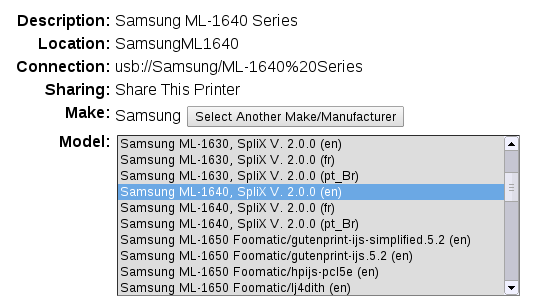 通过CUPS,你可以配置多台网络打印机。让我们通过CUPS配置一台额外的打印机:Samsung ML-1640,它是一台USB打印机。
