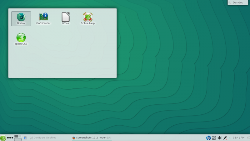 此版本中,YaST 向 Ruby 语言的迁移工作已成熟,其代码库已相当可靠,并且满满的都是您期待 YaST 应有的奇妙特性。ActiveDoc 可继续用来查找多种您在 Linux 世界中避无可避的工具的文档。13.2 还带来了 KDE 应用程序 4.14和 Plasma 桌面 4.11,它们共同组成了一个稳定的桌面环境,而 KDE 项目仍在迁移其代码到 KDE Frameworks 5。同时,GNOME 桌面更新到了3.14。LXDE 在此版本中大动干戈,更新了软件包,改进了美工,以及修复了大量的故障并加入了很多新特性。