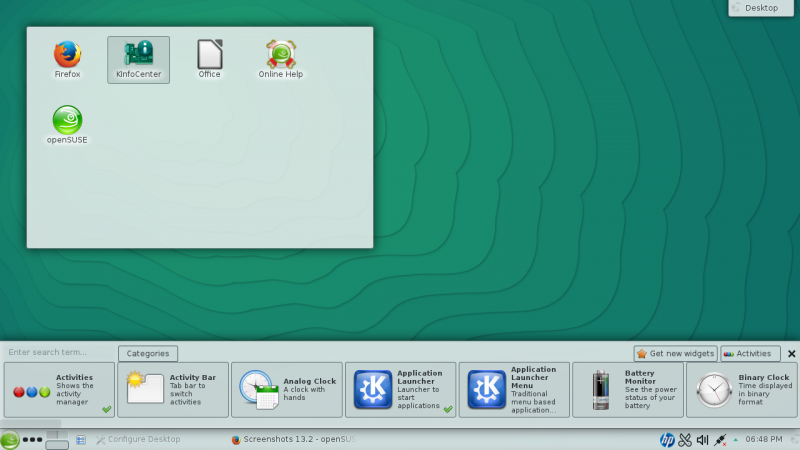 KDE 桌面使用了最新稳定版本的长期支持版 Plasma Workspace (4.11.12)。长期支持版意思是没有新功能,只有稳定性改进和故障修复。软件集合的应用程序部分也更新到了其最新稳定版 (4.14.2)。