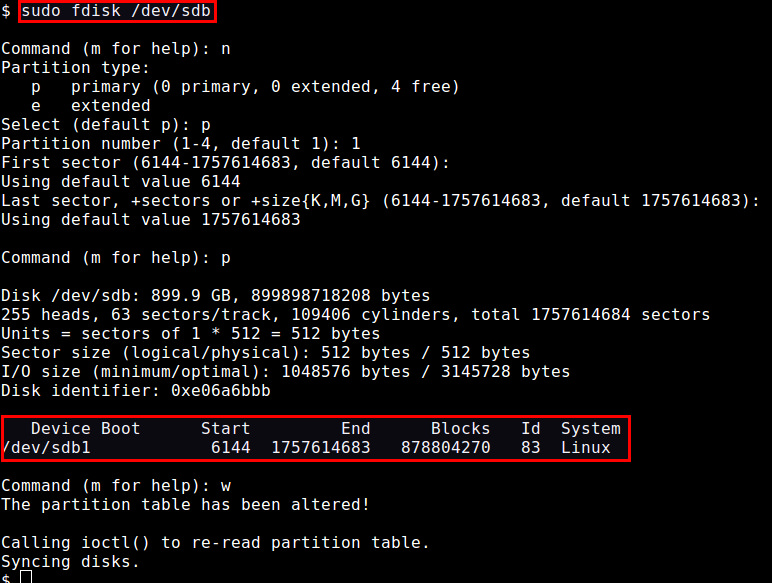 $ sudo fdisk /dev/sdb