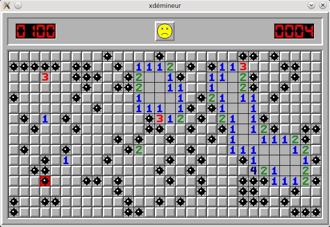 另外一个针对X的图形化扫雷Xdemineur,和Ace-Minesweeper十分相像,带有一个预定义的表尺寸。