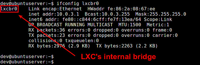 当你创建了 LXC 容器后,它的网口会自动链接到这个桥接网卡上,然后这个容器就能和外部世界通信了。