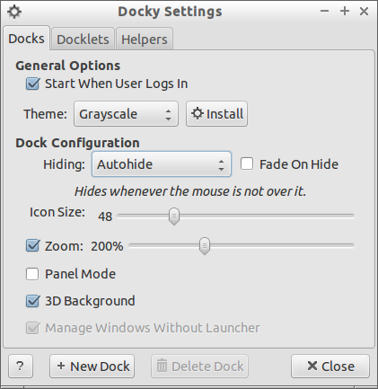 如果不开启混合功能,就不能使用Docky一些特别功能,如3D背景、自动隐藏。如果你想开启这些Docky的功能,那么你需要在你的LXDE系统中开启混合功能。