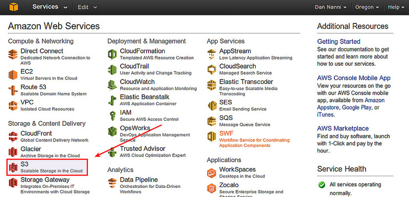 之后通过 AWS 管理面板访问 AWS S3,并为 S3QL 创建一个新的空 bucket。