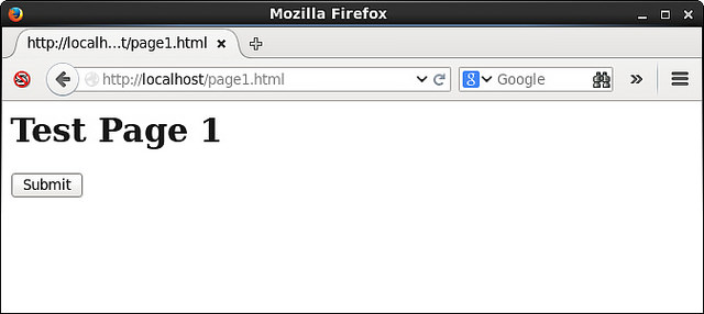 对于这个方案,我们将通过创建包含一个单一提交按钮的网页/var/www/html/page1.html开始。