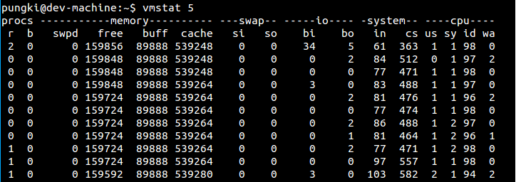 更多的信息参考vmstat命令的文章。