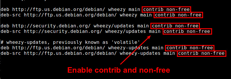 deb-src http://ftp.us.debian.org/debian/ wheezy main contrib non-free