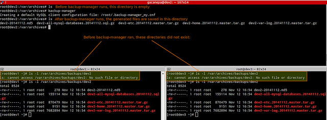 正如你在上面图片中看到的那样,备份管理器在运行的时候创建了一个名为/root/.back-manager_my.cnf的文件,MySQL密码通过BM_MYSQL_ADMINPASS指定。那样,mysqldump可以验证到MySQL服务器,而不必在命令行以明文格式接受密码,那样会有安全风险。