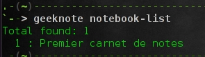 $ geeknote create --title "My note" --content "This is a test note" --tags "finance, business, important" --notebook "Family"