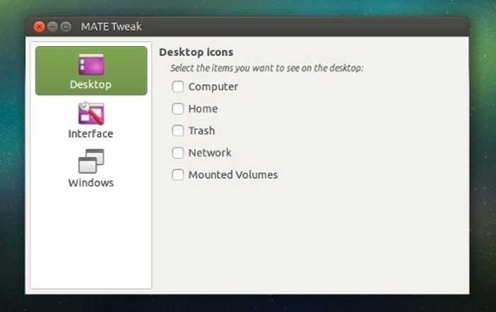 在Ubuntu中安装Mate桌面是一码事但是你或许想要知道如何配置Mate桌面? 大多数桌面环境都有它们自己的调整工具。比如Unity有Unity Tweak,Gnome有Gnome Tweak,Elementary OS有 Elementary OS Teweak。好消息是Mate桌面也有它自己的调整工具,叫Mate Tweak]2。