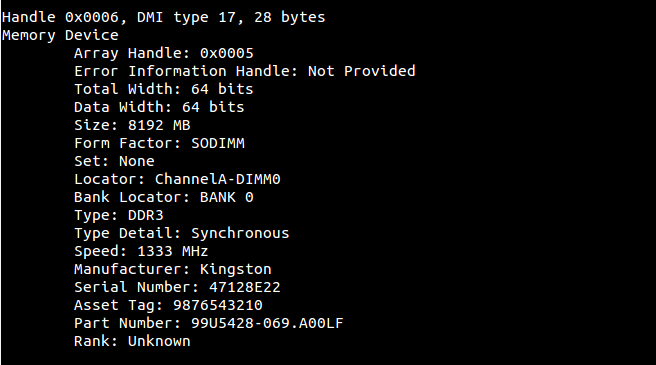 接下了就是两个插槽的信息,由于我只插了一条8G的条,所以第二个的信息是空的