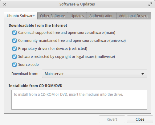 上面描述的方法已经修复了这个apt-get update cannot be used to add new CD-ROMs错误。但是这个方法对我无效,因为cdrom的选项这时是灰色的,因为我使用的live版本。