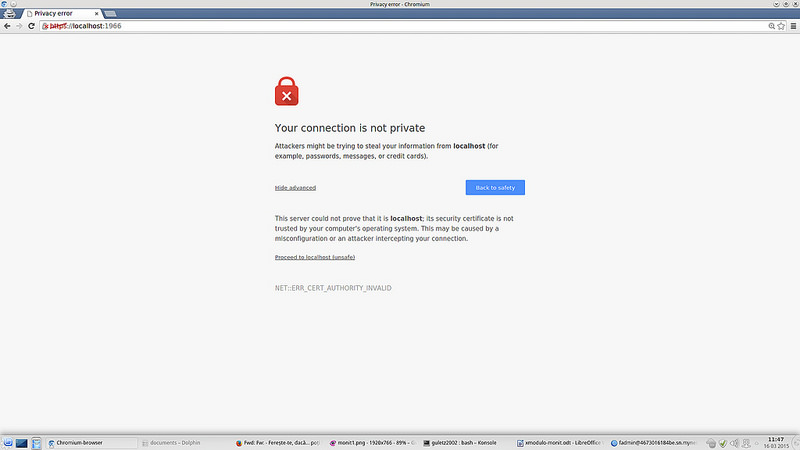 如果你使用的是自签名的SSL证书,你会在浏览器中看到一个警告信息。继续访问即可。