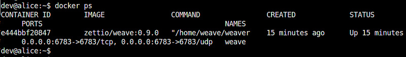 你也可以使用 docker 的命令来查看 weave 路由器的状态: