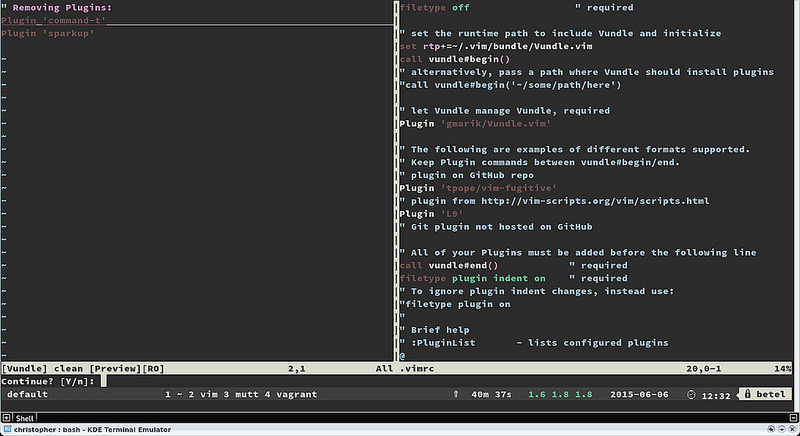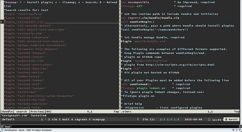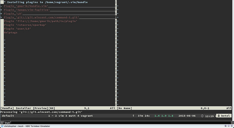 一旦你用vundle设置好你的插件,你就可以通过几个vundle命令来安装、升级、搜索插件,或者清除没有用的插件。
