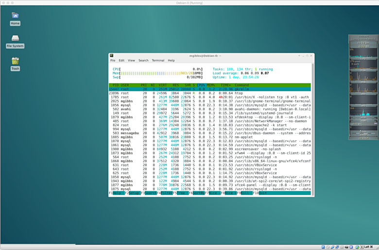 须知: 本文中的截图取自一台Debian Linux 8.1 (“Jessie”),其运行在OS X 10.10.3 (“Yosemite”)操作系统下的Oracle VirtualBox 4.3.28中的一台虚拟机里。想要建立你的Debian虚拟机,可以看看我的这篇教程——“如何在 VirtualBox VM 下安装 Debian”。