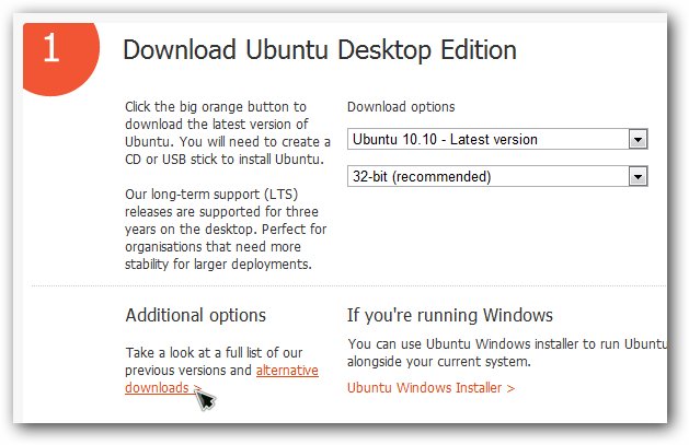 要使用LVM安装Ubuntu你需要使用另外的安装CD。从下面的链接中下载并烧录到CD中或者使用unetbootin创建一个USB盘