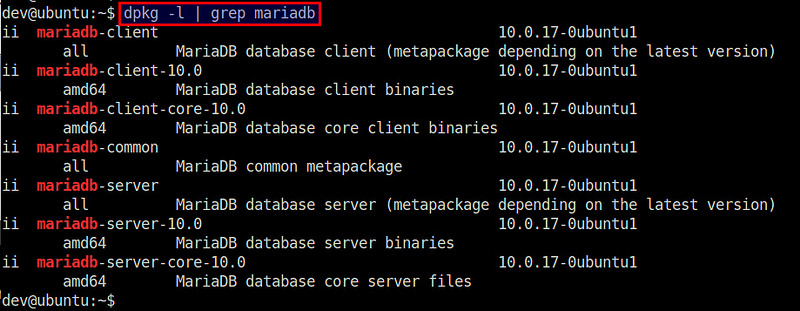 $ dpkg -l | grep mariadb
