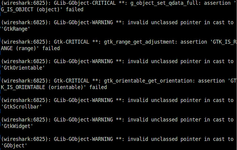 (wireshark:3480): GLib-GObject-WARNING **: invalid unclassed pointer in cast to 'GtkRange'