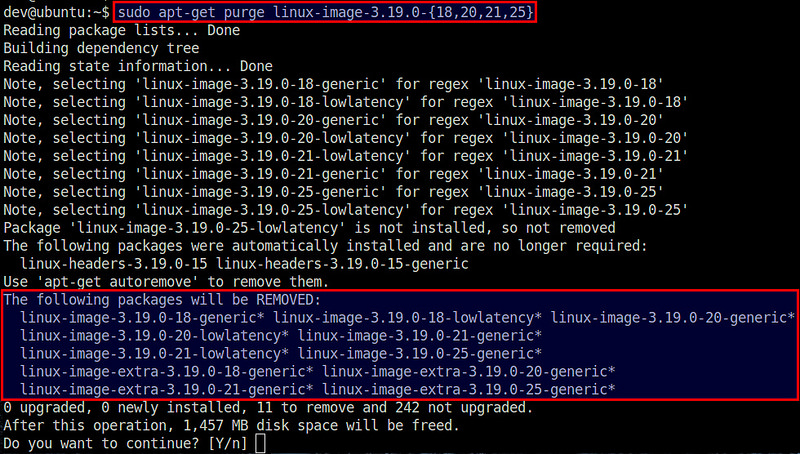 $ sudo apt-get purge linux-headers-3.19.0-{18,20,21,25}