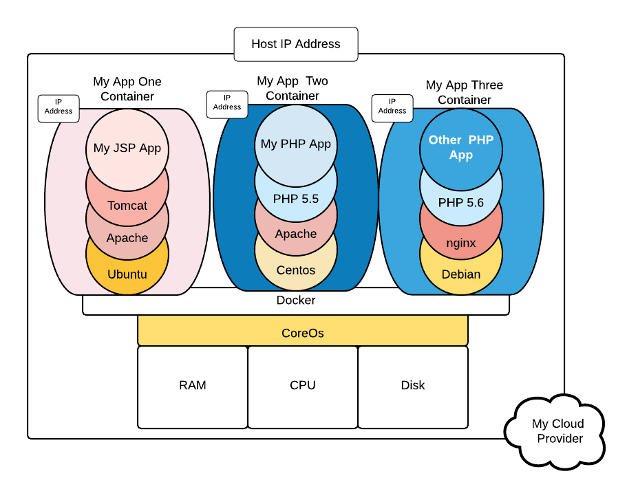 托管容器的计算机运行着被剥离的只剩下主要部分的某个 Linux 版本。现在,宿主计算机流行的底层操作系统是之前提到的 CoreOS。当然还有其它,例如 Red Hat Atomic Host 和 Ubuntu Snappy。