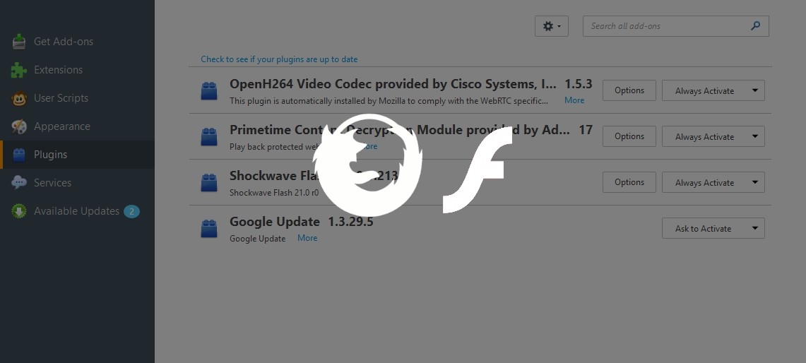 将在6月份进入稳定发布渠道的 Firefox 47 ,除了 Flash 之外的所有 插件 ( plugins ) 都需要手工“ 点击激活 ( click-to-activate ) ”了。